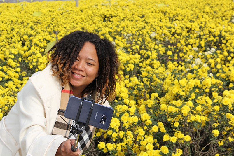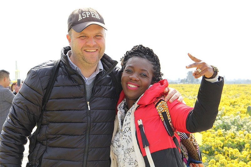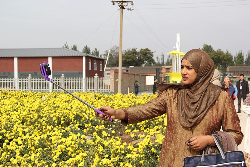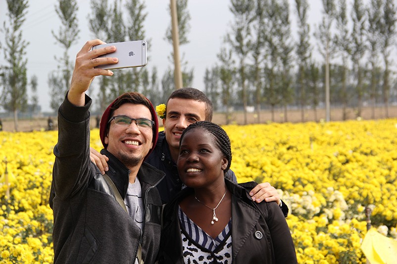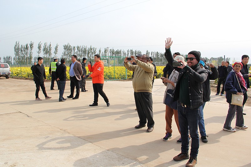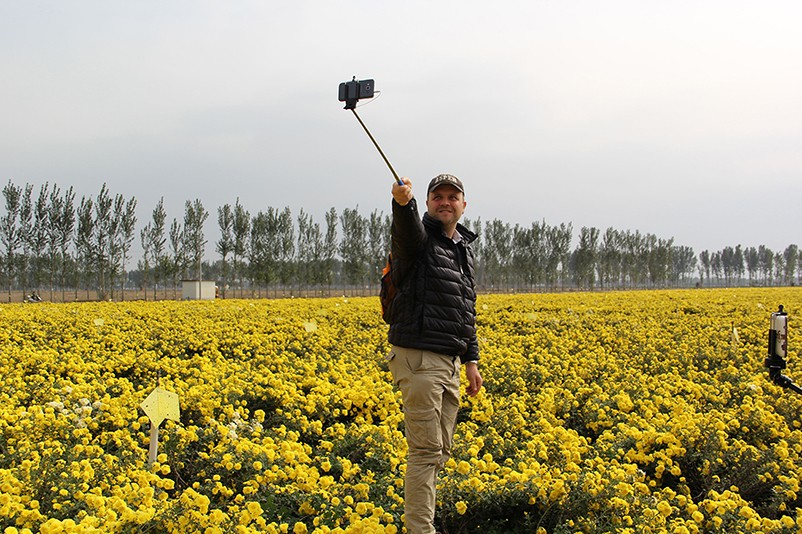 這也在拍,那也在拍,看來這些外國專家對咱們的云臺冰菊很有興趣么~各類膚色的人聚在一起共同賞菊品菊,場面和諧極了,看來不僅藝術(shù)能促進(jìn)各國間的文化交流,農(nóng)業(yè)照樣有聚集人心的魅力?。?/p>